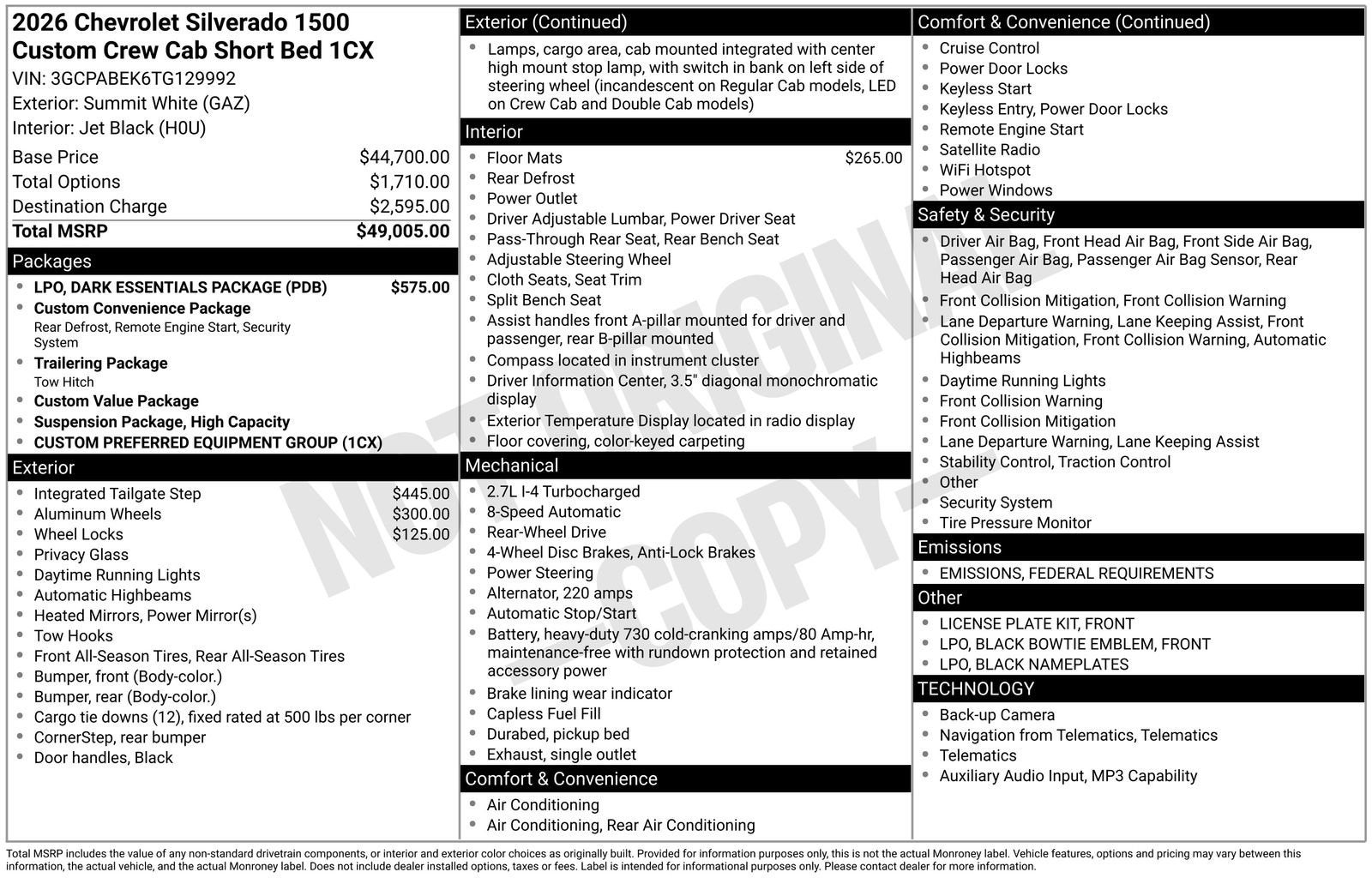 - Custom Preferred Equipment Group includes standard equipment