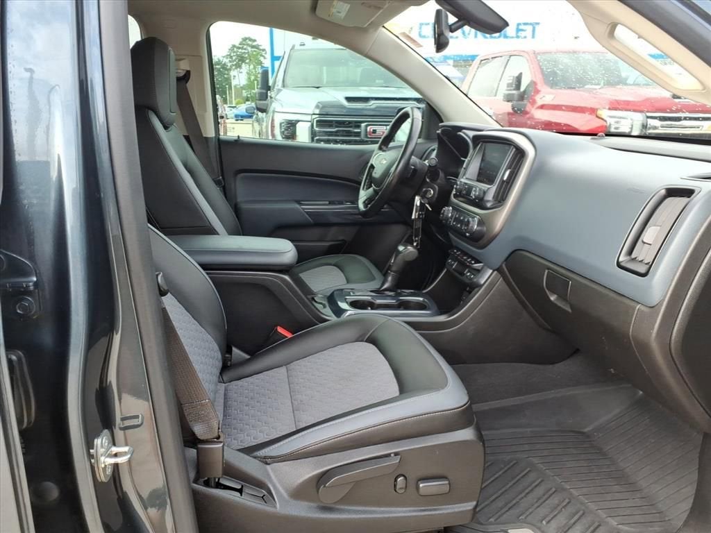 On the exterior, the Colorado Z71 stands out with 17-inch dark argent metallic cast aluminum wheels wrapped in all-terrain tires, front fog lamps, projector-type headlamps, and signature Z71 styling cues. Functional features like front recovery hooks, an EZ lift and lower tailgate, locking tailgate, and CornerStep rear bumper add real-world practicality to its rugged design. The Black Bowtie emblem package adds a subtle custom touch that complements the truck’s aggressive appearance.