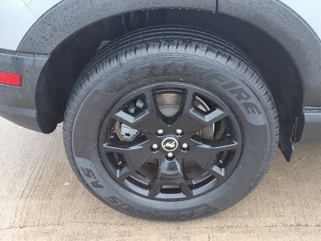 On the exterior, the Bronco Sport features LED headlamps and taillamps, active grille shutters, black roof rack side rails, and a liftgate with liftglass for easy cargo access. The 17-inch sparkle silver wheels and all-season tires provide a confident stance both on and off the road.