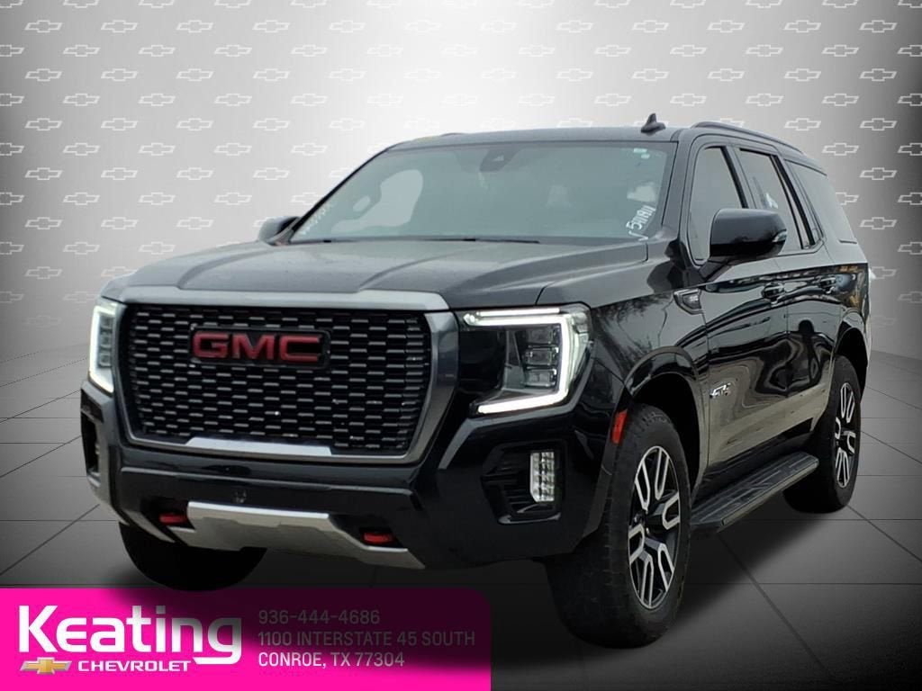 The 2021 GMC Yukon AT4 4WD combines rugged capability with premium luxury, perfect for adventure or family excursions. Finished in Onyx Black with Jet Black perforated leather seating, it features a 5.3L ECOTEC3 V8 engine paired with a 10-speed automatic transmission for confident performance both on and off the road.