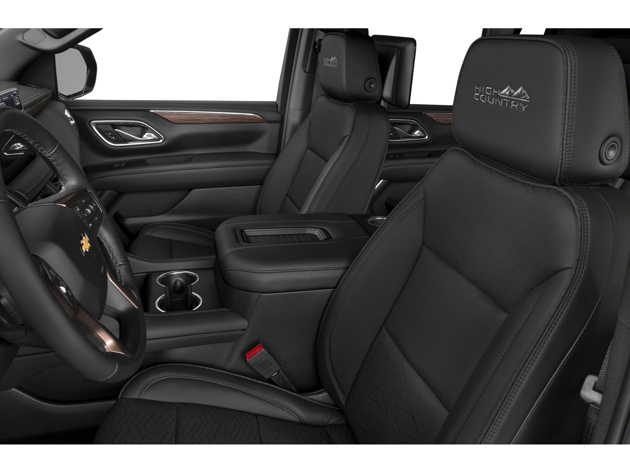 Inside, the Suburban High Country offers a premium, first-class cabin designed for long-distance comfort and family versatility. Heated and ventilated front leather power bucket seats, second-row heated bucket seats with power release, and a power-folding third-row seat ensure comfort for every passenger. Tri-zone automatic climate control, a rear camera mirror, and driver memory settings for the seat, mirrors, and steering column add convenience and personalization.