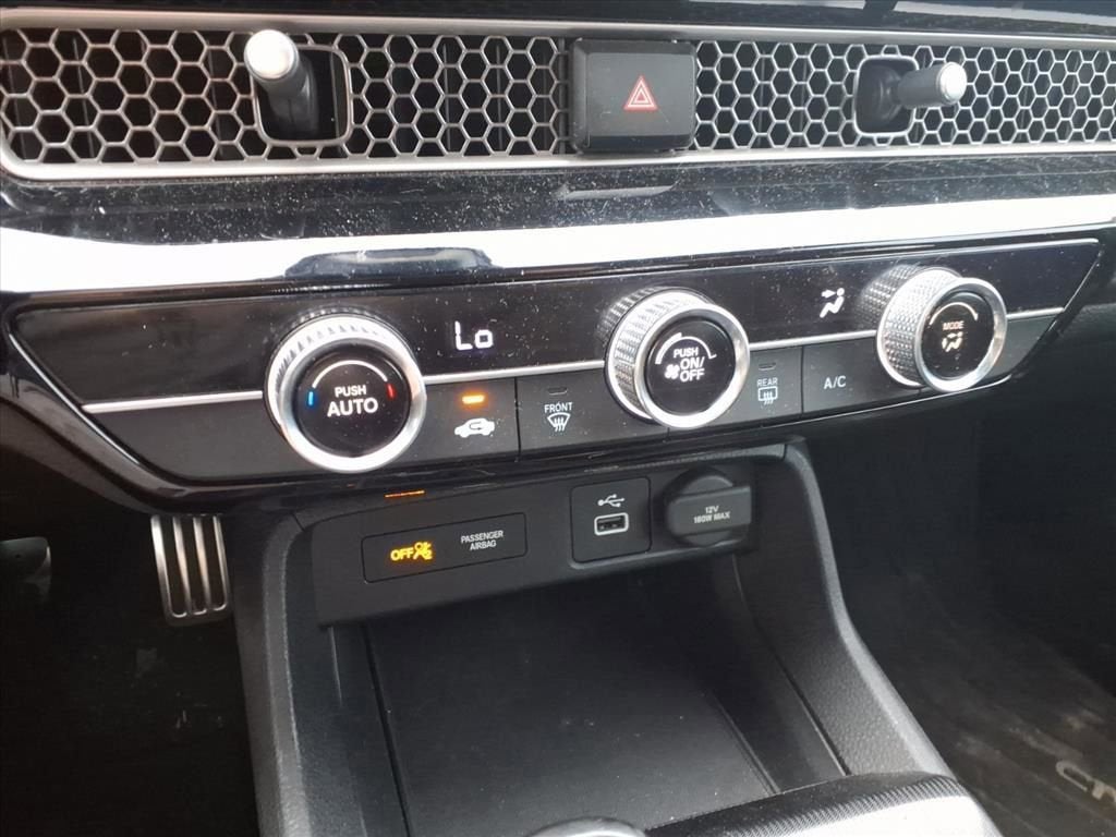 On the exterior, the Civic Sport features LED headlights with automatic high beams, LED brakelights, a bold black grille, and 18-inch wheels wrapped in all-season tires for a sporty stance. Body-colored accents and clean lines give it a modern, athletic appearance, while practical elements like a compact spare tire and rear defroster enhance everyday usability.