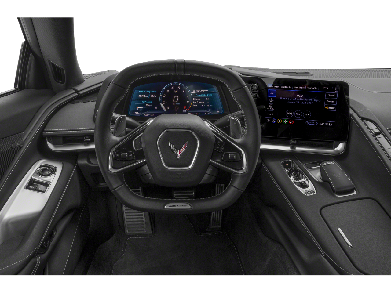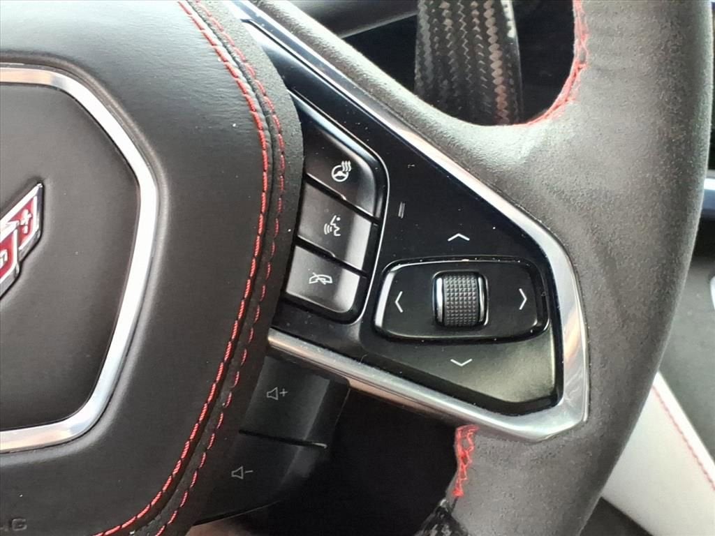 Inside, the Ceramic White interior with Red stitching reflects exceptional attention to detail and premium materials. The 3LZ trim includes Napa leather seating surfaces, heated and ventilated GT2 bucket seats, a carbon fiber and leather-wrapped steering wheel, and a custom leather-wrapped interior package. The sueded microfiber headliner and trim add a race-inspired feel, while memory seating, dual-zone automatic climate control, and a heated steering wheel ensure comfort during every drive.