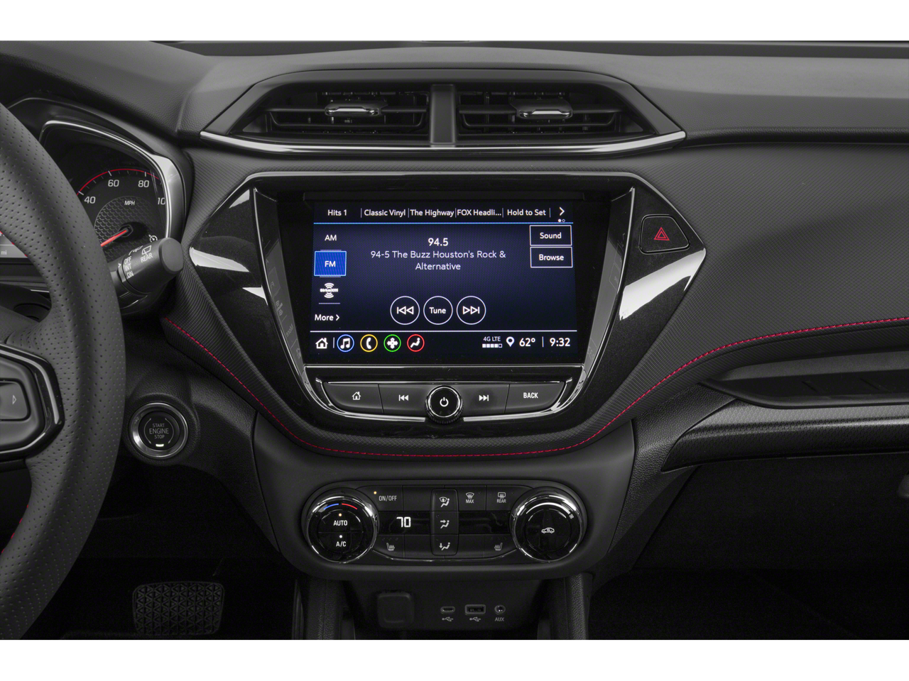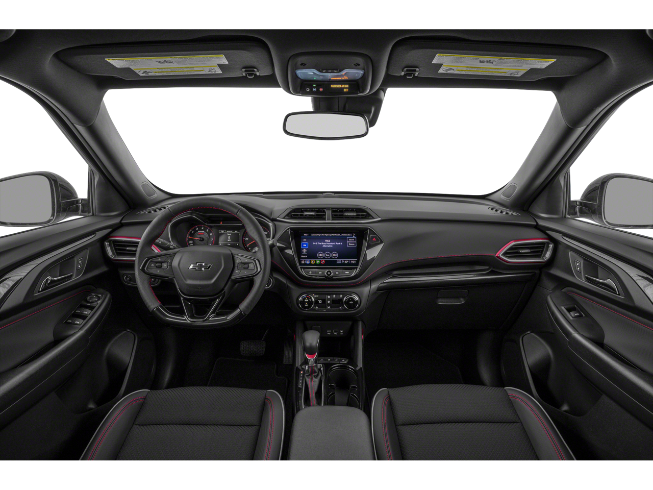 Inside, the RS cabin balances comfort and functionality with a heated flat-bottom leather-wrapped steering wheel, power-adjustable driver seat with lumbar support, and flexible seating thanks to a 40/60 split rear bench and flat-folding front passenger seat. Technology is front and center with Chevrolet Infotainment 3, featuring a color touchscreen, wireless Apple CarPlay® and Android Auto™, Bluetooth® streaming, voice command capability, USB connectivity, and available Wi-Fi through OnStar®. The Convenience Package enhances everyday comfort with automatic climate control, an auto-dimming rearview mirror, illuminated vanity mirrors, a 120-volt power outlet, and an upgraded touchscreen display.