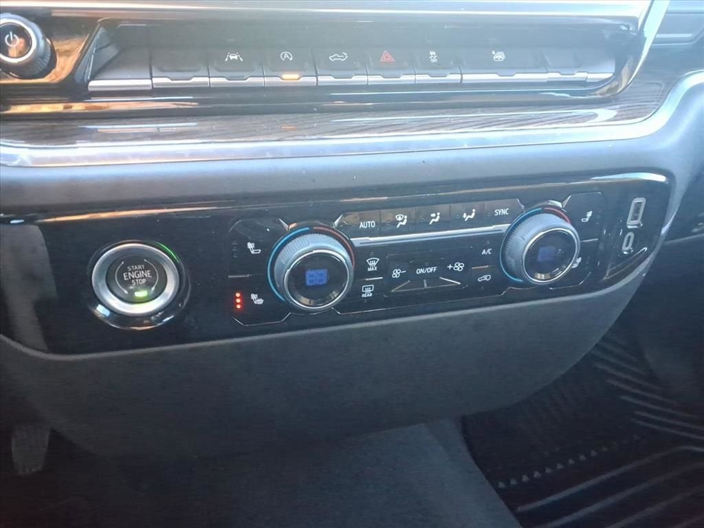 The interior is designed for comfort and convenience. It features a 10-way power driver seat, front 40/20/40 heated bench with armrest and underseat storage, rear 60/40 folding bench seat, dual-zone climate control, heated and wrapped steering wheel with audio controls, and durable carpeted and rubberized vinyl floor mats. Connectivity is comprehensive with the Chevrolet Infotainment 3 system with 13.4-inch HD touchscreen, wireless Apple CarPlay and Android Auto, 12.3-inch digital driver information center, remote start, keyless open/lock/start, USB ports, 120V power outlets in the bed and cabin, rear seat reminder, OnStar and Wi-Fi data capability, and SiriusXM trial.
