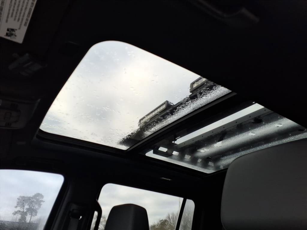 The exterior features LED headlamps and taillamps, a hands-free programmable power liftgate, black tubular assist steps, all-terrain tires on 20-inch machined aluminum wheels, red recovery hooks, and a high-approach angle front fascia designed specifically for off-road driving. Deep-tinted glass, heated power mirrors, and rain-sensing wipers enhance visibility and convenience.