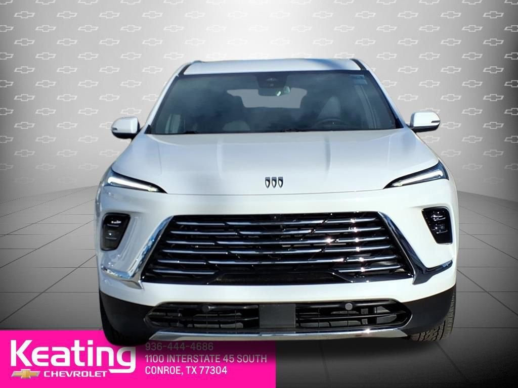 The 2025 Buick Enclave Preferred in Summit White with Ebony Leatherette interior is a refined, three-row SUV that blends luxury, technology, and family-friendly versatility. Powered by a 2.5L turbocharged DOHC SIDI engine paired with an 8-speed automatic transmission, it delivers smooth performance and confident handling for both city driving and highway cruising. Active noise cancellation enhances cabin quietness, and the Enclave rides on 20-inch alloy wheels with a medium finish, complemented by brushed aluminum roof rails and a power liftgate for convenient cargo access.